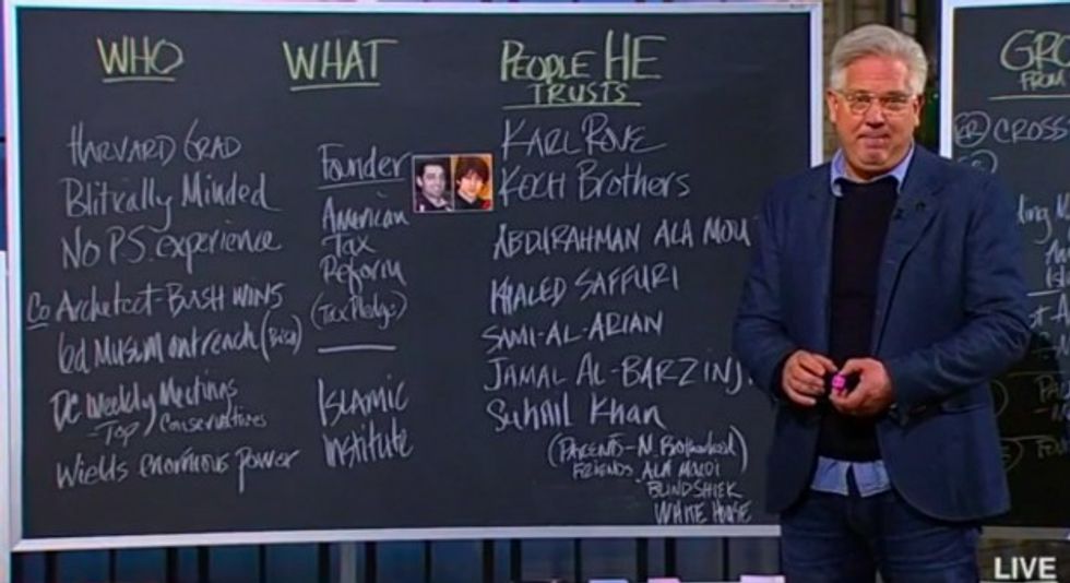 "He is a power player who has managed to use his influence to evade any real scrutiny over his dangerous connections," Beck said. "He has a long list of connections with radical Islamic organizations, and in some cases, actual terrorists. ... I don't know the man at all. I'm not going to try to figure out why he's doing this. I don't know. ... [But] this is about national security. This is a danger to you, your family and the republic."