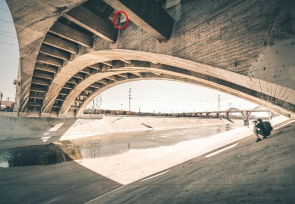 Photographer Seth Peebler snapped an artsy photo from underneath the 4th Street Bridge in Los Angeles, but lurking in the darkness was something that he didn't notice until afterward.