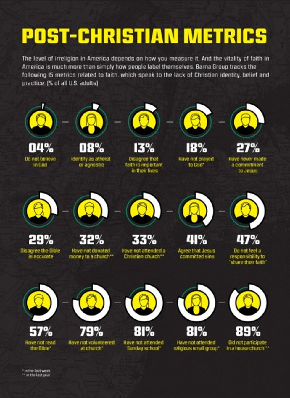 "While self-described atheism and agnosticism may be on the rise in America, the post-Christian metric reminds observers that most Americans remain connected in some way with Christianity," Barna noted.