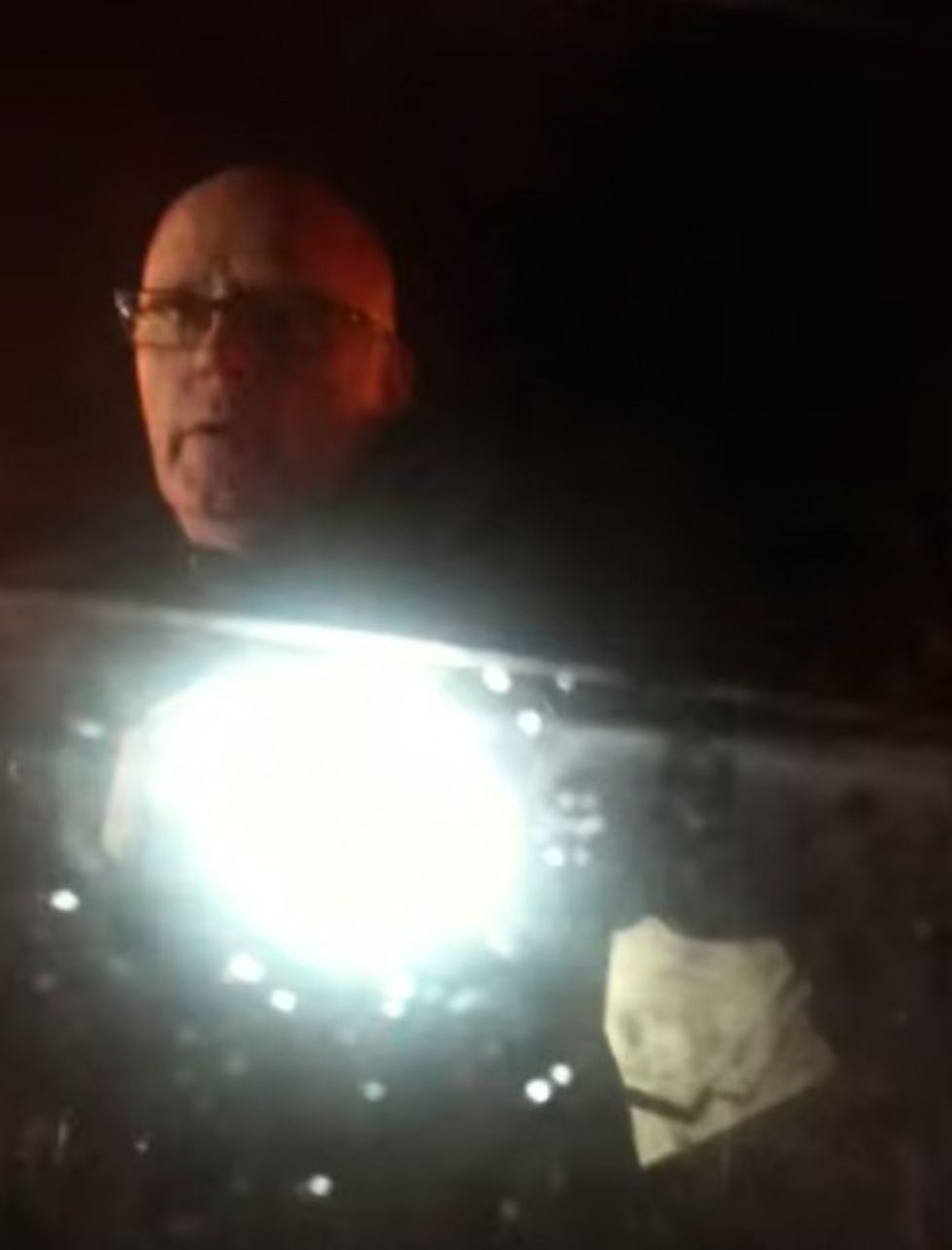 The driver claims the police are blinding him with their flashlights and demands to know why he's being pulled over — all while refusing to lower his window more than a few inches.