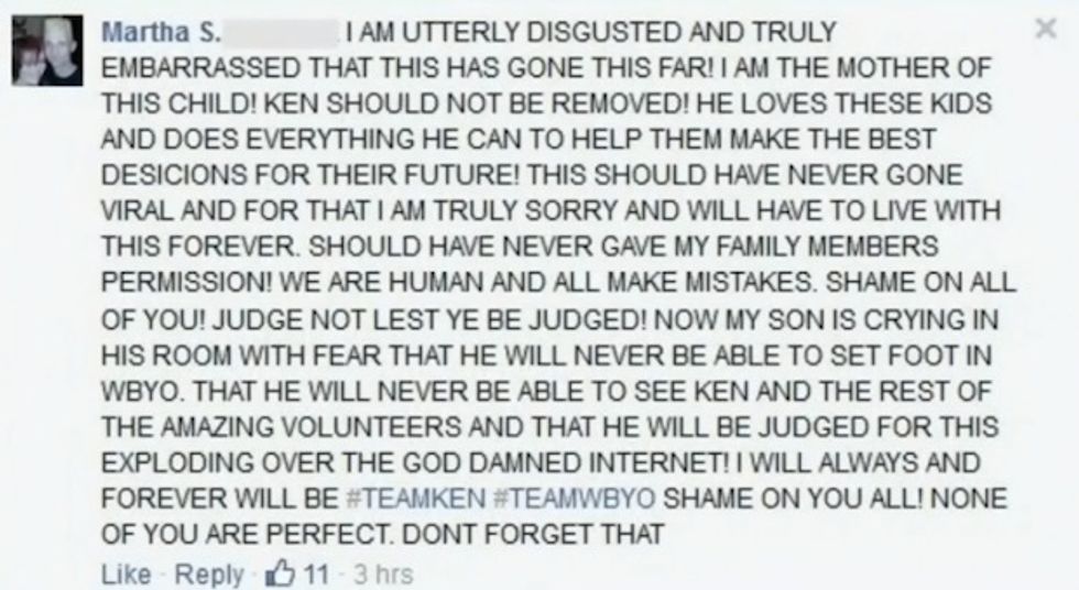 The concerned mother also posted a statement on her now-disabled Facebook page, defending the director: