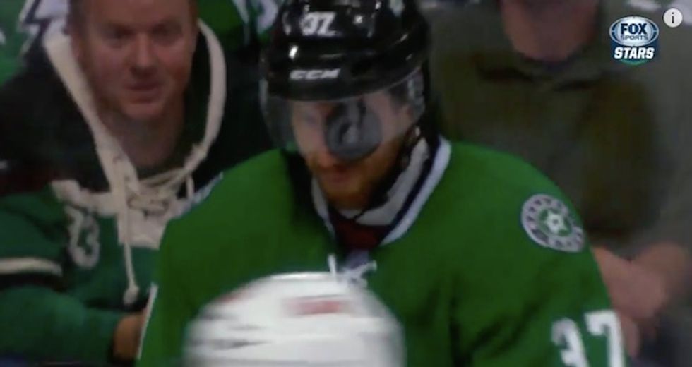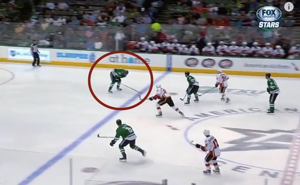 Dallas Stars' defenseman Patrik Nemeth was protecting his team's zone against an attack from the Calgary Flames when a shot deflected off his stick and headed towards his face.