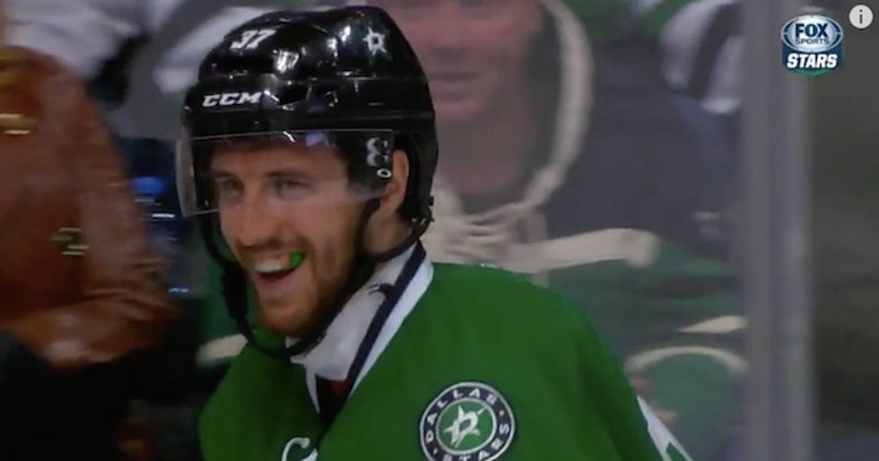 Seconds later, Nemeth removed the puck and smiled, realizing he probably made the night's highlight reel.
