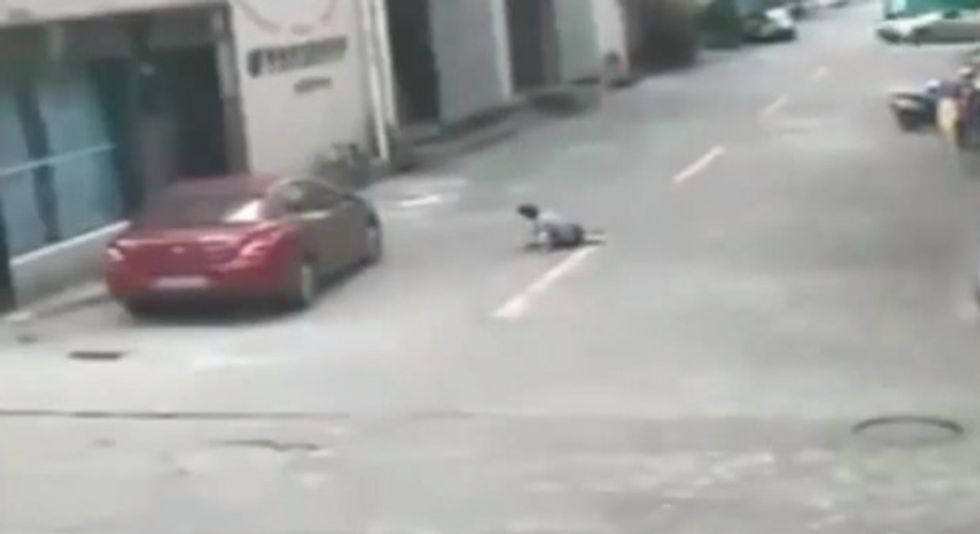 You can watch video of the shocking incident, which reportedly occurred in China, below:
