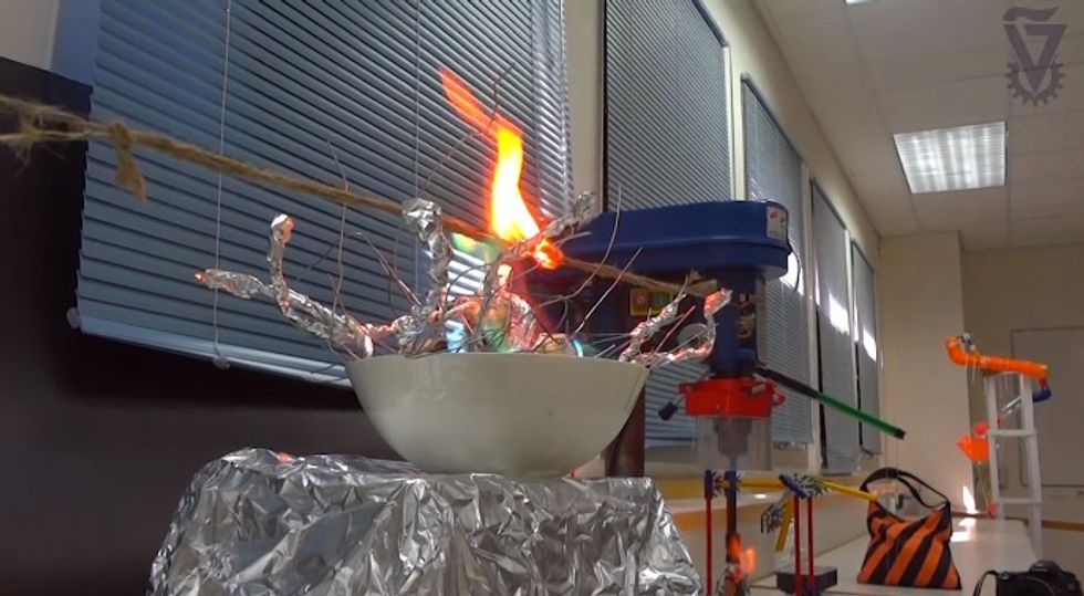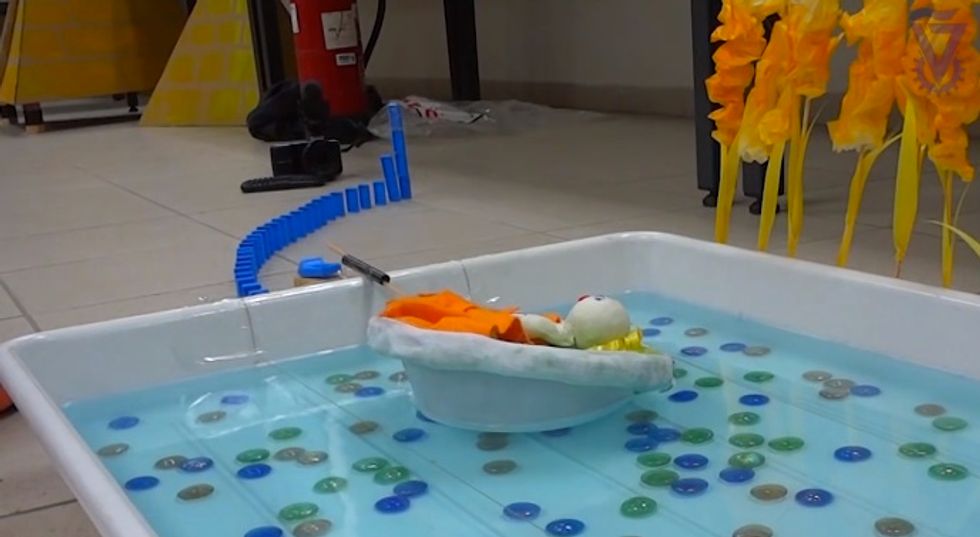 Students at the Technion-Israel Institute of Technology constructed a Rube Goldberg machine that tells the Exodus story behind the Jewish holiday of Passover.