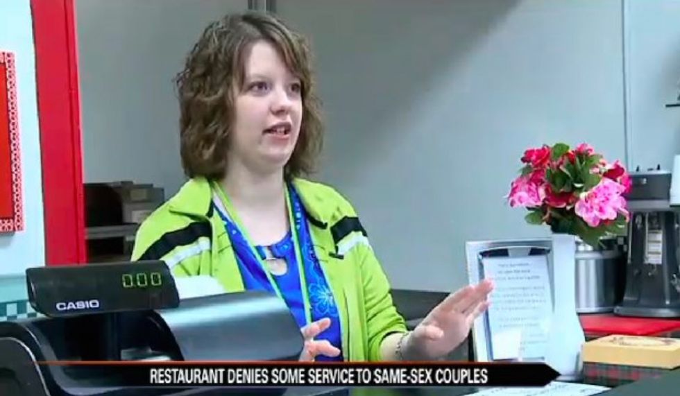 "We're very hurt and confused and we stood up for what we believe," she said. "The news just took it totally out of proportion. They lied about it. We said that we would serve anyone that walked in that door, even gays, but we would not condone a wedding. We would not cater that because it's against our religious beliefs."