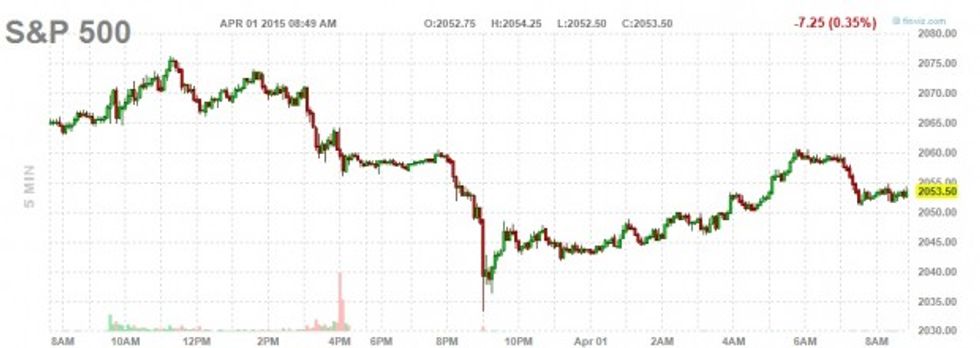 JonesTrading's David Lutz reported that the "crush[ing]" of the S&P and NASDAQ were all traders could talk about Wednesday morning, and Business Insider's Sam Ro noted the severity of the move.