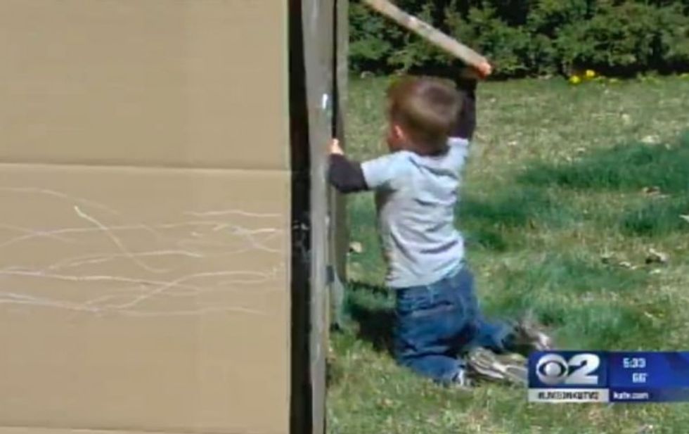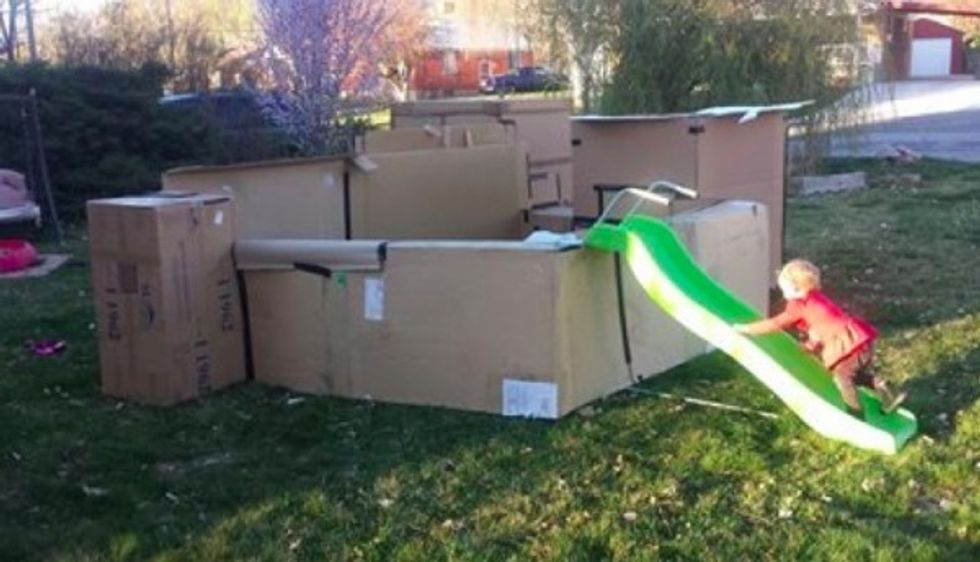 The Utah family of four — Jeremy and wife Dee, along with their toddlers Max, 3, and Story, 2 — and some friends turned a pile of cardboard boxes last week into a front-yard fort complete with towers, trap doors, and tunnels.