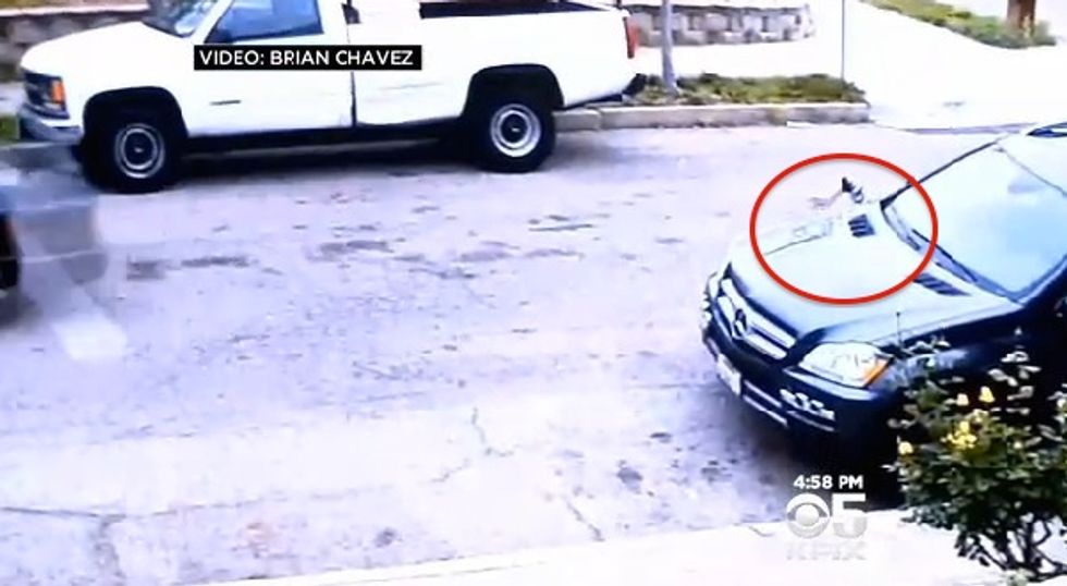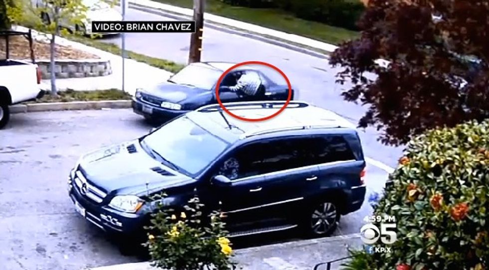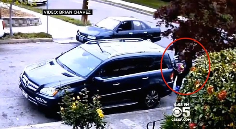According to KPIX, the suspects are a man and a woman. The news station noted that the video did not pick up the license plate number.