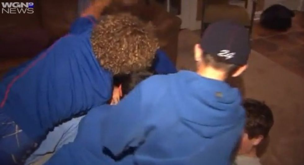 Holtz and his friends celebrated after Duke University's win Monday night. (Image source: WGN-TV)