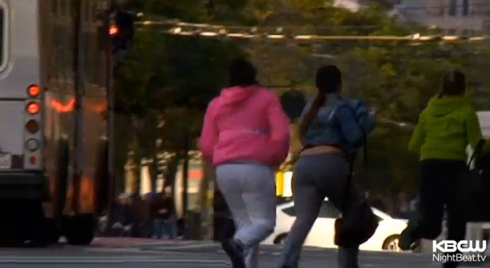 After KPIX caught a few minutes of the fight on camera, the girls ran off. (Image source: KPIX-TV)