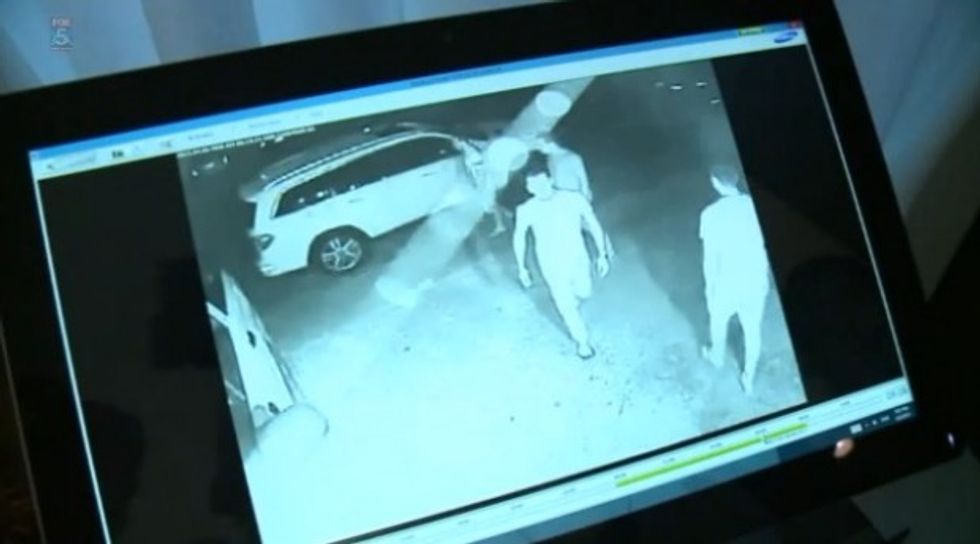 Home surveillance footage shows Dahan and his family checking the front yard for the possible suspects. Authorities later arrived on scene and asked neighbors if they saw anything.