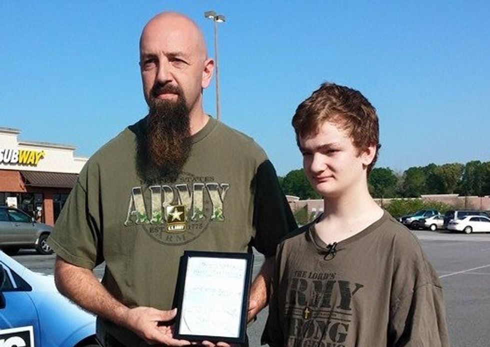 Georgia teenager James Dorris, 13, had seen the veteran license plate on Robinson's car and decided to leave a note, WSB-TV reported.