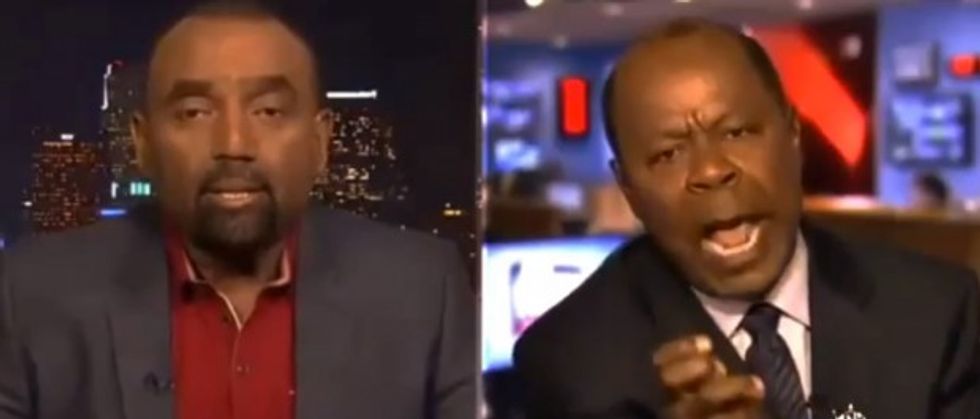 "This is the second time in Fox News cable that you and I, Sean Hannity, agree," Terrell began. "Jesse Lee Peterson is the only man on the face of this earth who is talking about everything else but the unlawful shooting of this man. ... And for you to come on this show as a black man and to say somehow — to justify this shooting, you are an embarrassment to the world right now! The whole world is looking at how stupid you are!"