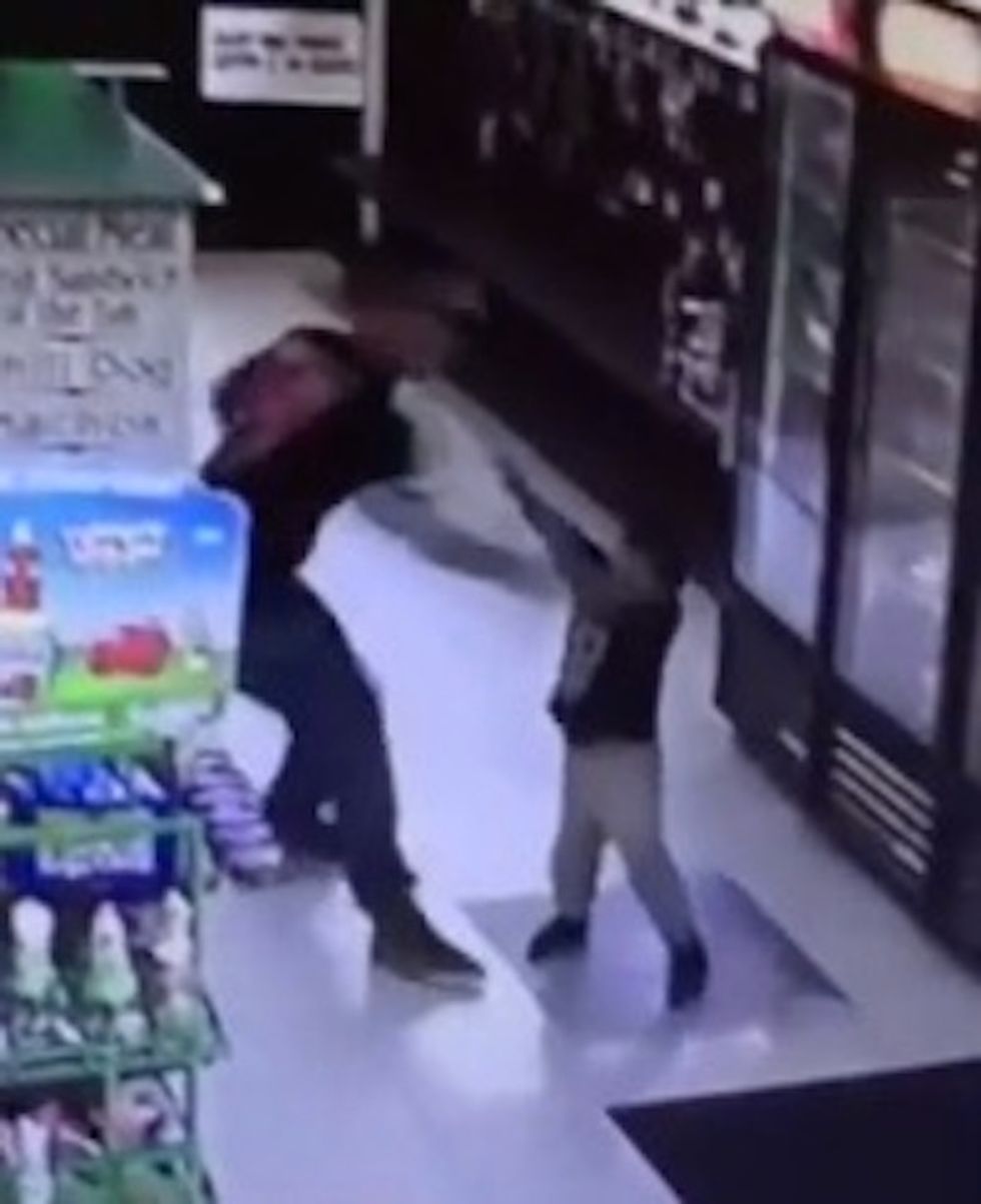 "This is the most horrible thing I've ever seen. Watch this little kid get knocked out by his dad," a person watching the footage said in KERO-TV's report.