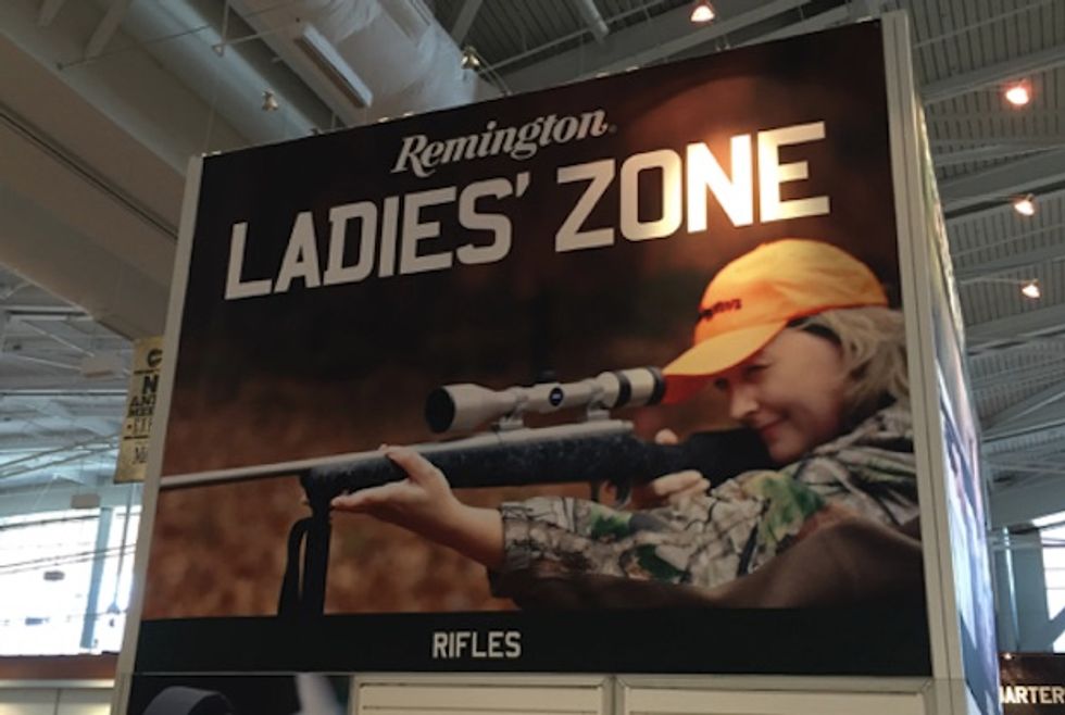 In the middle of the Remington booth, you can't miss the "Ladies Zone" — a section dedicated to promoting shooting sports to women.