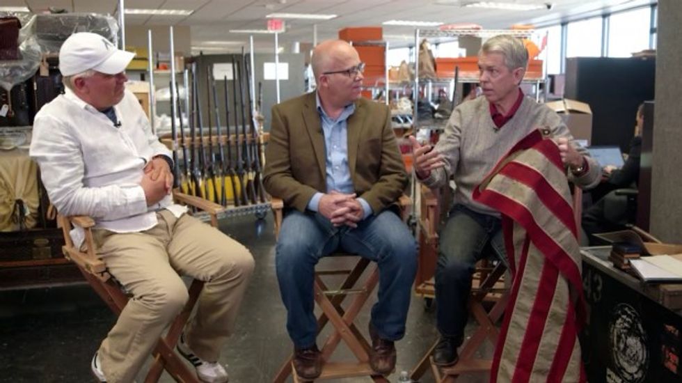 Last year Glenn Beck revealed that he had acquired an American D-Day 48 Ensign flag that flew on the USS LST-493 landing ship throughout the Normandy invasion. At the time it was reported that he paid around $350,000 in conjunction with his charity Mercury One for the incredible piece of history. Beck confirmed the amount during a recent trip to Heritage Auctions in Dallas with historians David Barton and Reid Moon.