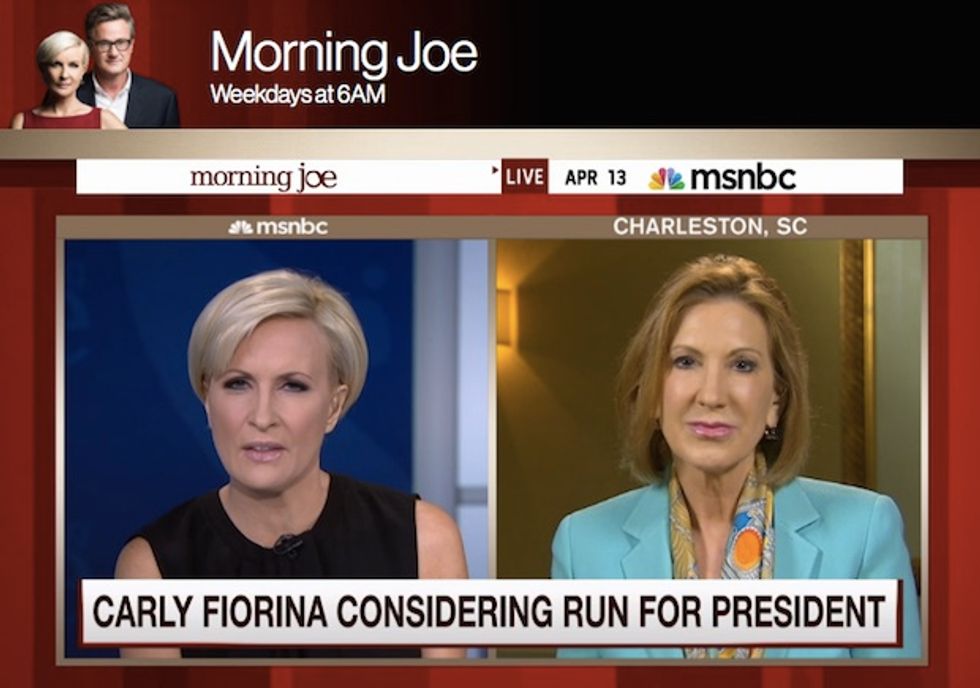 The morning after Hillary Clinton announced her 2016 run for the White House, possible GOP contender, Carly Fiorina appeared on MSNBC and got into a tense exchange with host Mika Brzezinski.