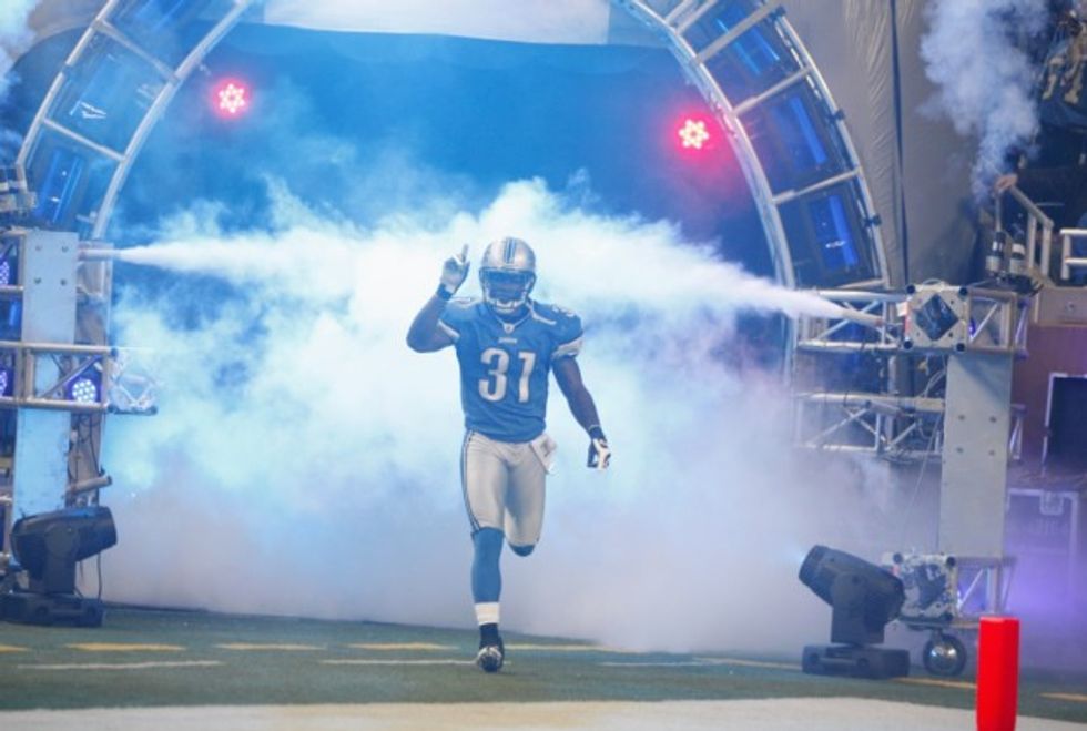 Phillip Buchanon #31 of the Detroit Lions takes the field during player introductions prior to playing the Arizona Cardinals on December 20, 2009 at Ford Field in Detroit, Michigan. (Photo by Gregory Shamus/Getty Images)
