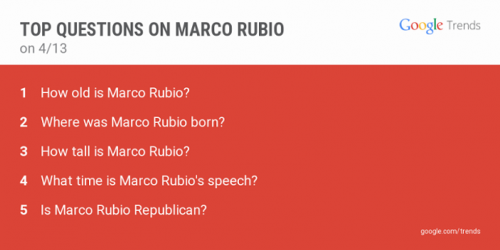 It was the top search for Sen. Marco Rubio (R-Fla.) the day of his announcement and had also been one of the top searches for Sen. Rand Paul (R-Ky.).