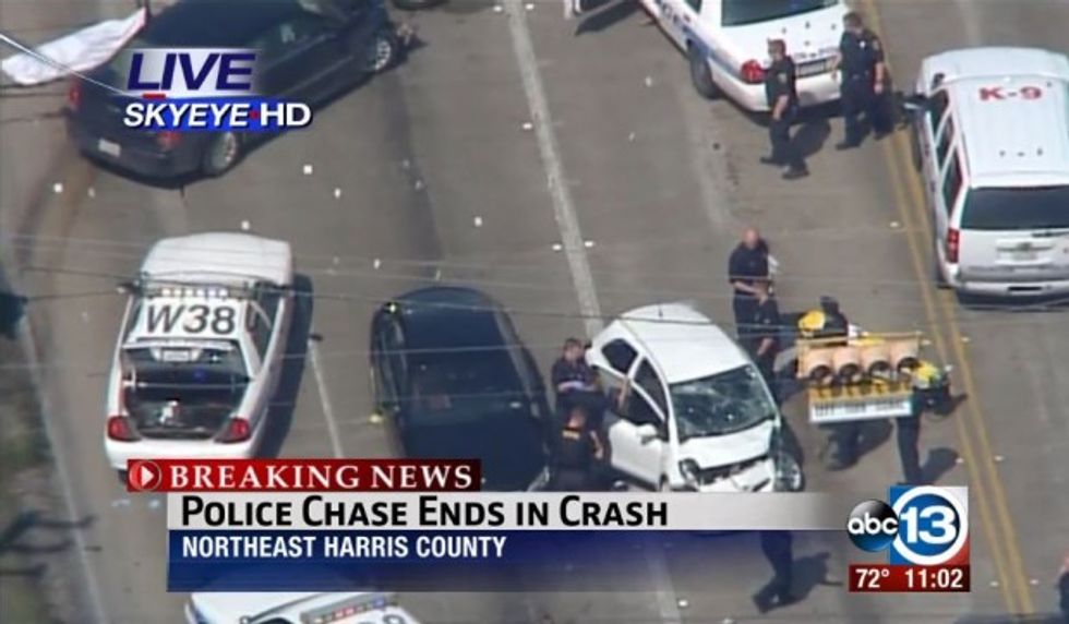 According to Houston's ABC 13, the incident began as a traffic stop, which turned into a chase that lasted about 30 minutes. The chase ended after the suspect's car rammed two other cars head-on. The driver exited his vehicle, then appeared to reach back into his car, when officers opened fire.