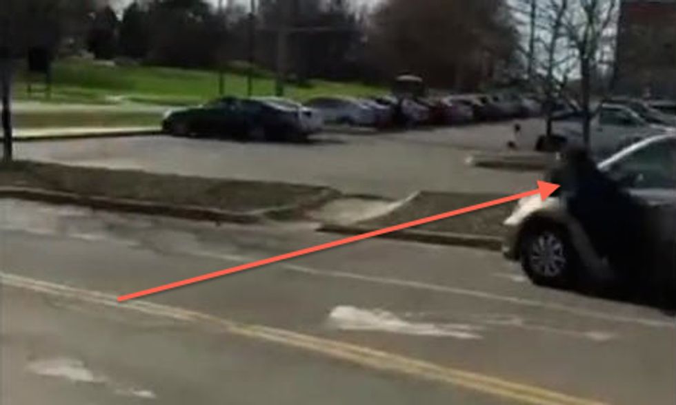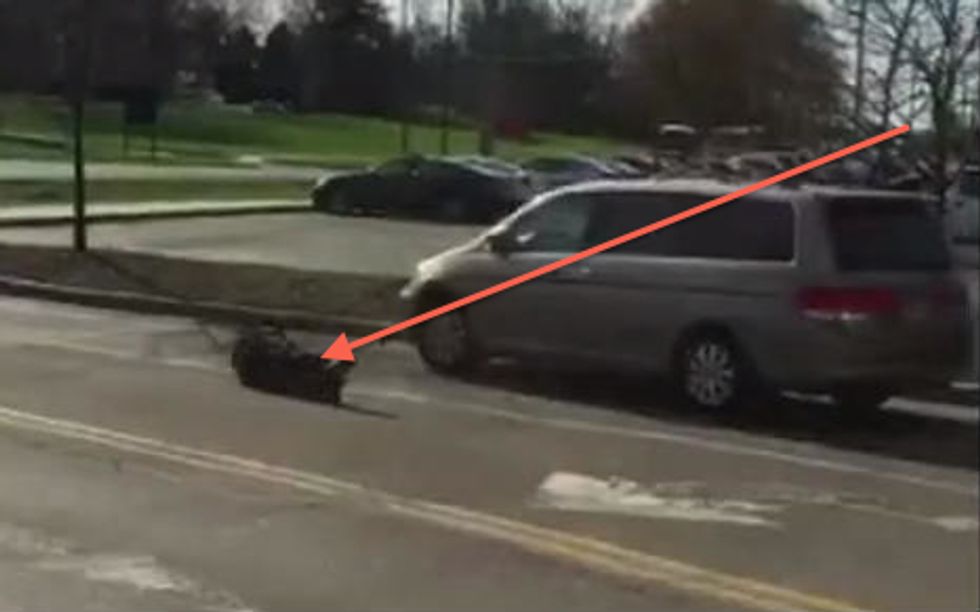 Linden Adkins, who is an assistant professor at Kent State University's College of Applied Engineering, Sustainability and Technology in Kent, Ohio, is seen berating the driver of a minivan, who he said cut him off and nearly hit a student all while texting on their cellphone, WEWS-TV reported.