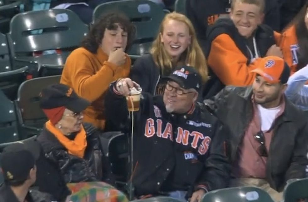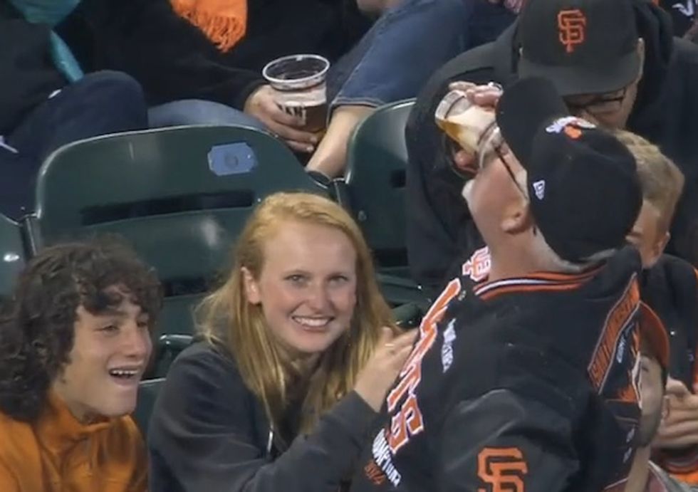 On the other side of the country, in San Francisco, the beer-cup catch was repeated when a stadium worker flipped a foul ball into the stands.