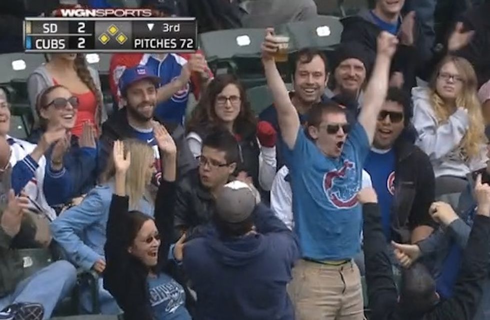 The trend started on Saturday, in the game between the Chicago Cubs and San Diego Padres. Cubs fans were already in a good mood as the team was leading 6-2 in the ninth inning when San Diego's Yonder Alonso fouled off a pitch.