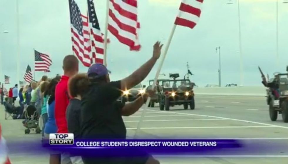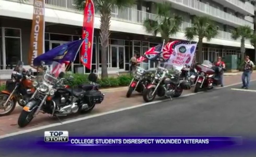 "They actually spit on me and my service dog as well, and that's just so disrespectful and it hurts," wounded vet Nicholas Connole told WJHG-TV. "I come and I feel honored and I feel safe and like I belong, but now I feel like I'm defending myself."