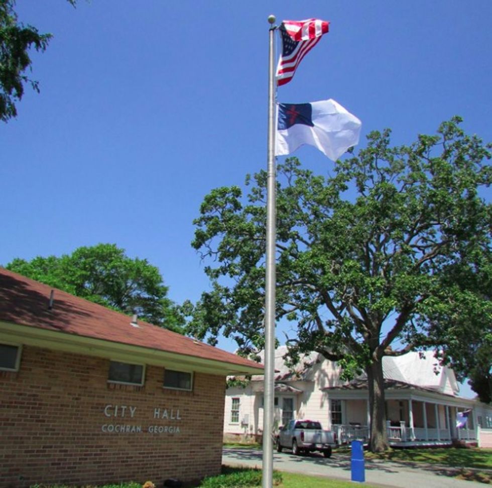Officials in Cochran, Georgia, voted 5-1 to keep the flag — a white, blue and red design that was created in 1897 to commemorate the Christian faith — at city hall after it was previously taken down over fears of a First Amendment violation, WMAZ-TV reported.