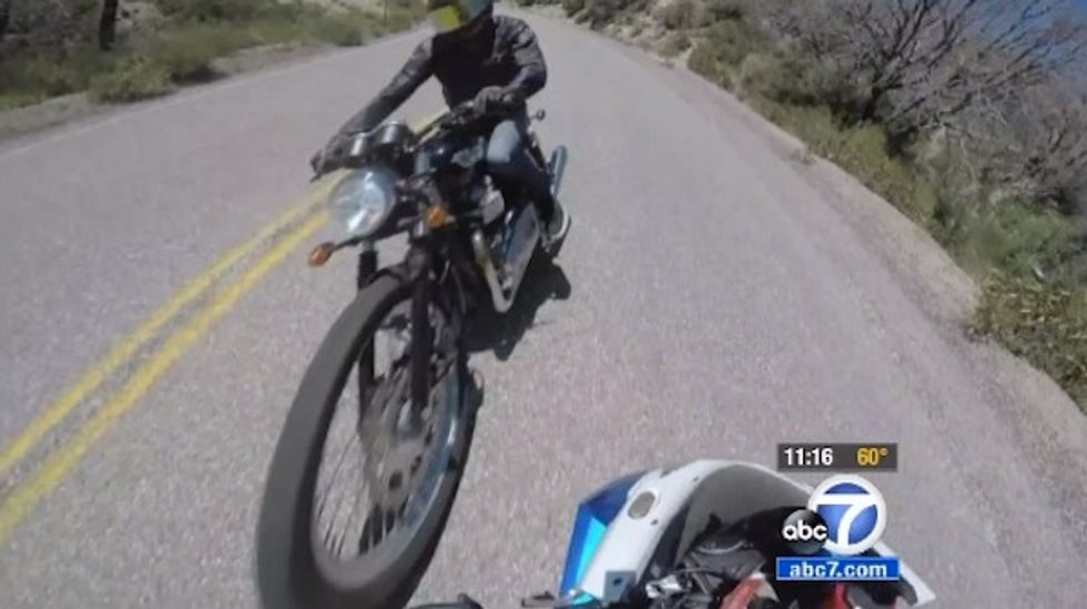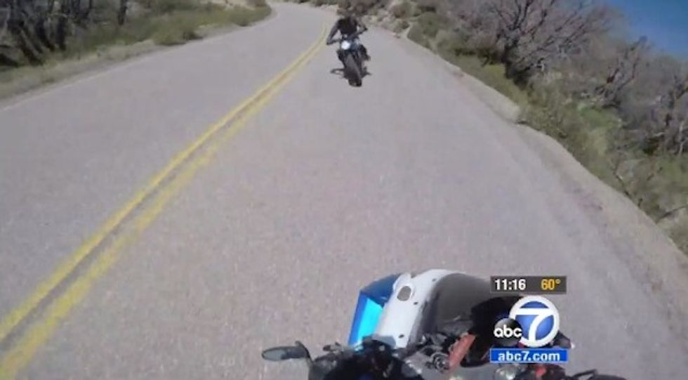 A motorcyclist was rounding a bend on California's Los Angeles Crest Highway over the weekend when he saw a fellow motorist in the wrong lane.