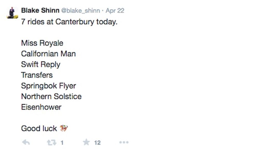 Random pic of @blake_shinn leaving Canterbury racecourse today pic.twitter.com/p8tn4Od6z0