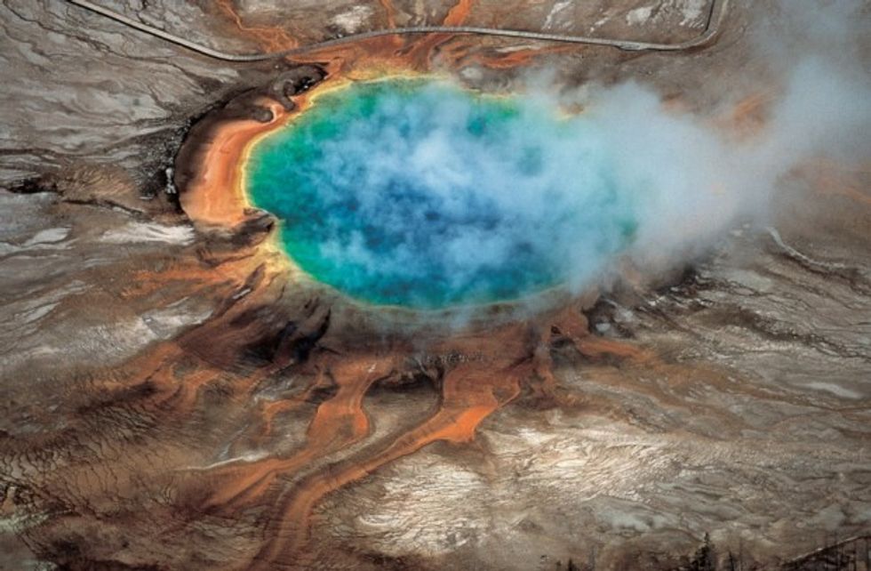 The Grand Prismatic hot spring was created by created the Yellowstone supervolcano. (Image source: “Windows into the Earth,” Robert B. Smith and Lee J. Siegel, via University of Utah)\n