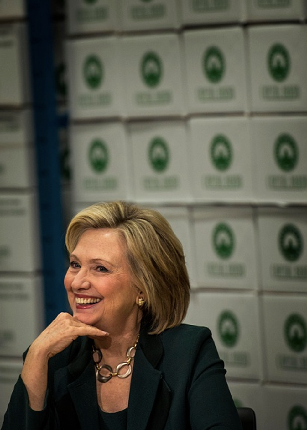 Former Secretary Hillary Clinton meets with small business owners at Capitol City Fruit for a roundtable discussion in Norwalk, Iowa on Wednesday, April 15, 2015. (Photo by Melina Mara/The Washington Post via Getty Images)