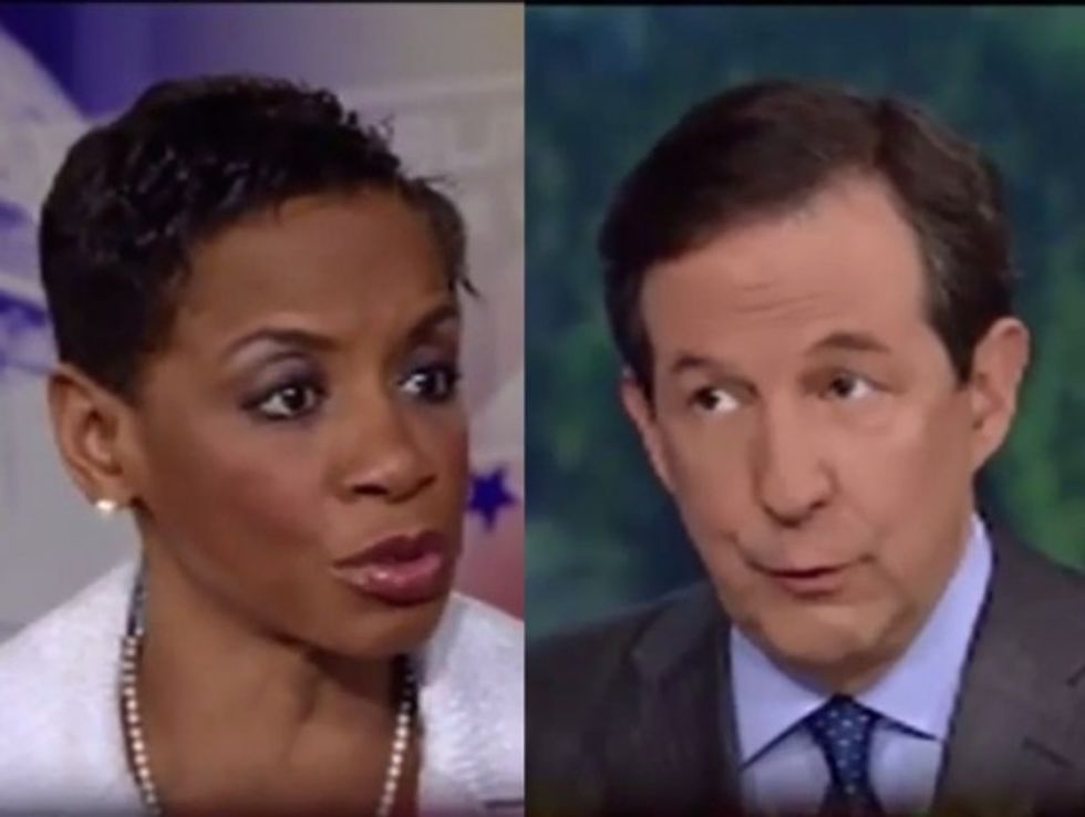 Fox News' Chris Wallace, right, questions Democratic Rep. Donna Edwards on whether liberal policies have failed the city of Baltimore. (Images via Fox News/YouTube)