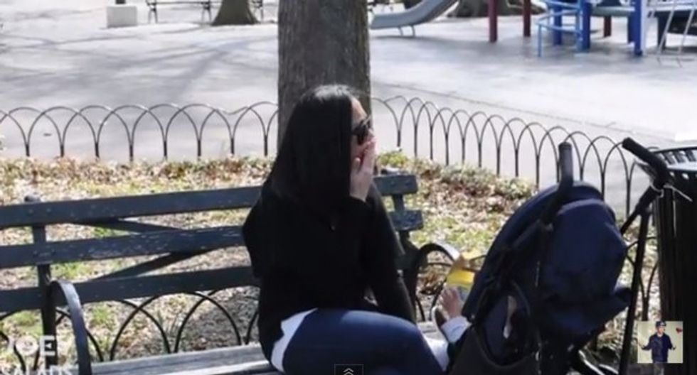 The girl's mother put her hand to her mouth in shock as she watched from a park bench.