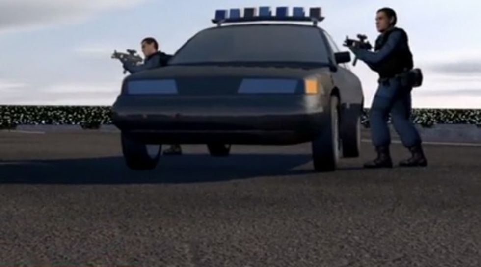 Though police said the officer used his service pistol, the CNN animation above shows the cop firing a rifle for some reason.