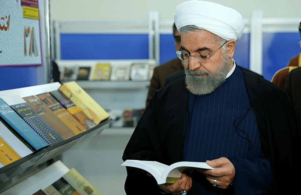 ranian President Hassan Rouhani looks books during the 28th Tehran International Book Fair (TIBF) in Tehran, Iran on May 05, 2015. (Photo by Pool / Iranian Presidency Press Office/Anadolu Agency/Getty Images)
