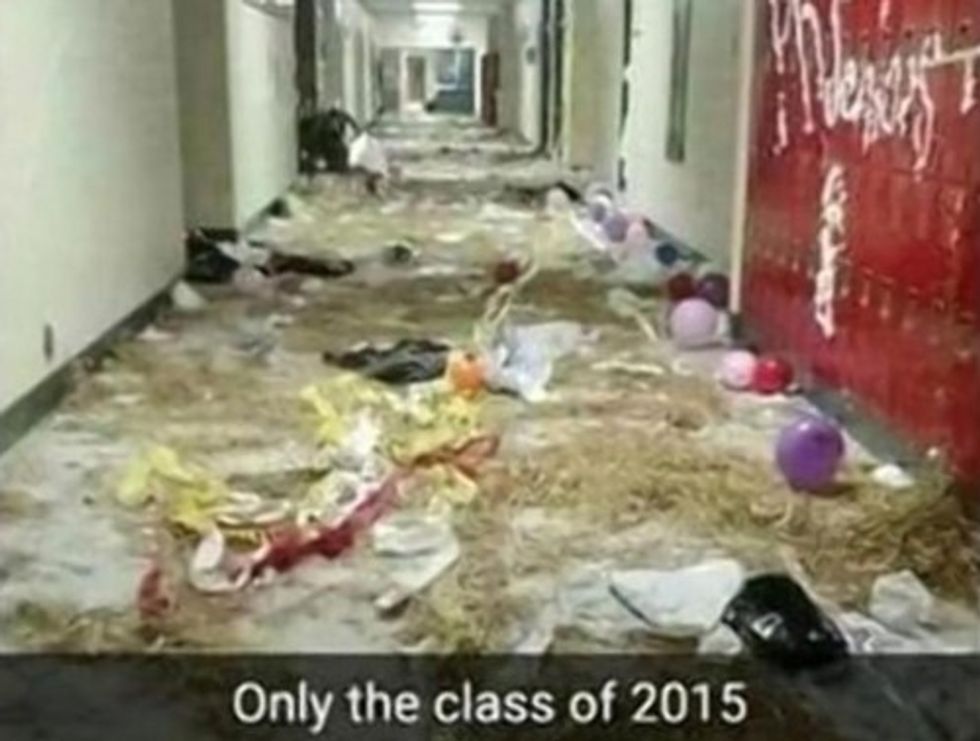 "The doors in the back of the school were propped open with a chair," senior Katelin Barnes told the station. "They told us when we got in the school, Officer Fisher did, that don't steal anything and don't break anything and we'll be good."