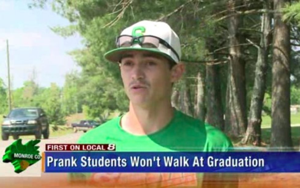 Nevertheless, Superintendent Tim Blankenship said all involved in the prank to any degree are barred from graduation ceremonies. Principal Gary Cole was indefinitely suspended without pay until an investigation concludes, WVLT said.