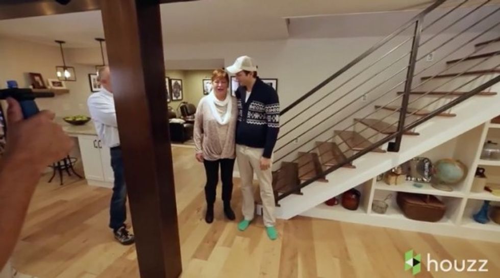 So, Mark, Kutcher's stepfather, told him to get his hammer and saw ready. Working with the home design app Houzz and a designer they found through the system, they transformed the basement for his mother, Diane.