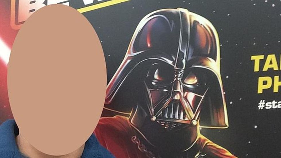 The Melbourne Herald Sun reported that a man in his 40s was shopping for a present for his partner at the the Westfield Knox mall on Wednesday when he saw a large "Star Wars" display and walked over to take a picture of himself in front of Darth Vader.