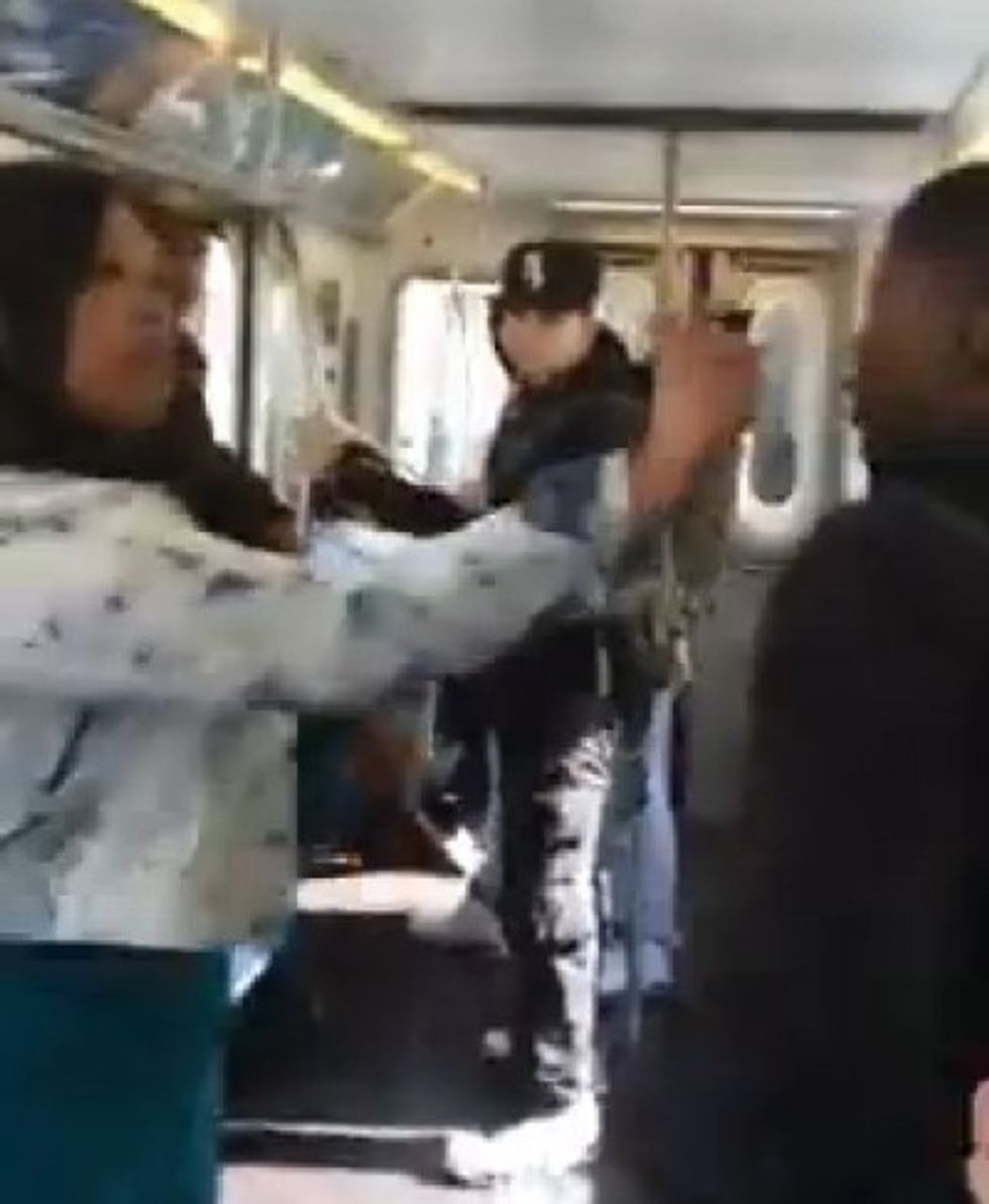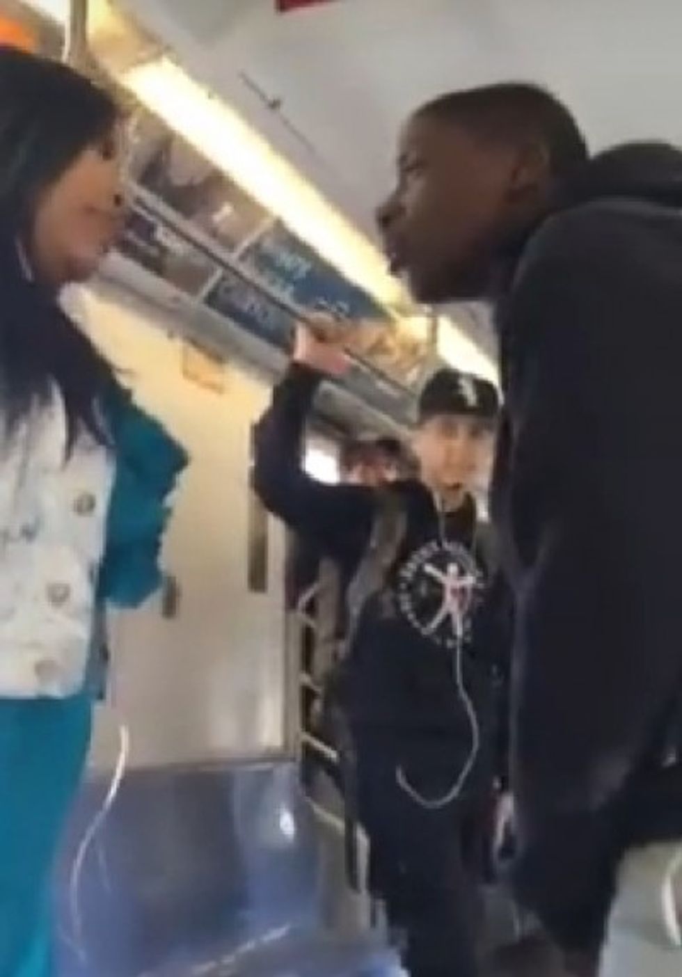 After staring down a couple of riders — one of whom had his head down and soon moved further from the scene — the man asked the woman, “What you gonna do, baby? What you gonna do?”