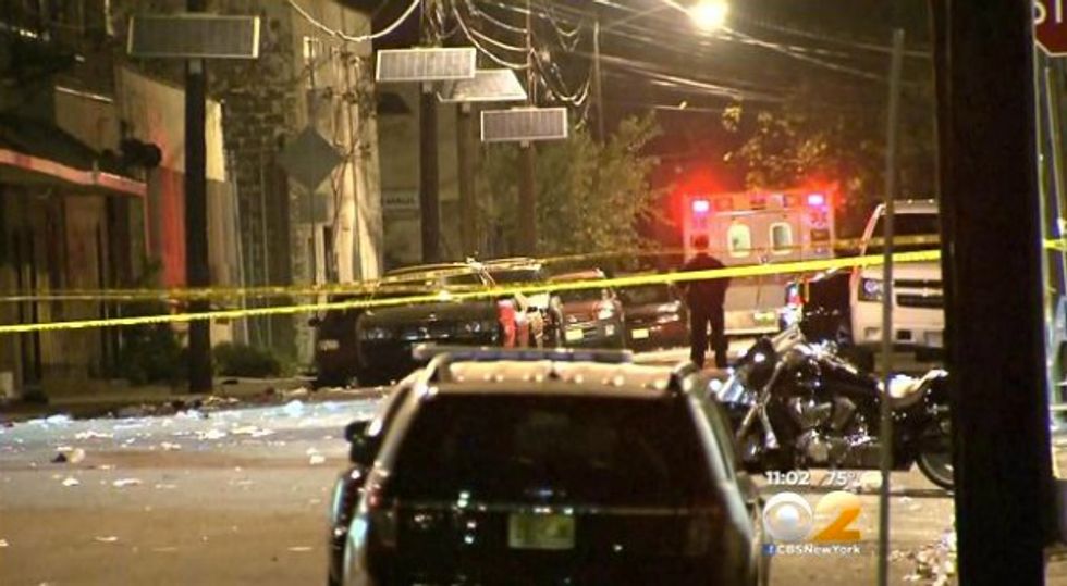 Police blocked off the crime scene in Newark, N.J., Sunday night as they sought suspects involved in a fatal shooting that took place near a bike blessing. (Image source: WCBS-TV)