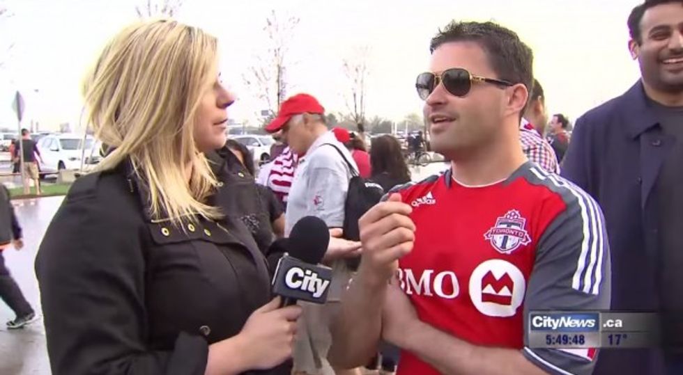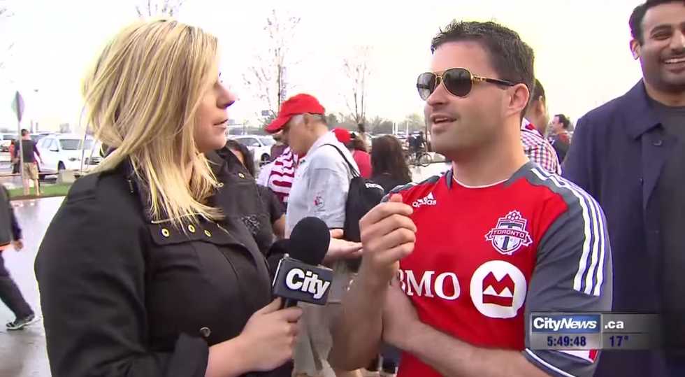 Speaking to fans outside a Toronto FC match on Sunday, CityNews reporter Shauna Hunt was interrupted on live TV by an unfortunately familiar and vulgar stunt.