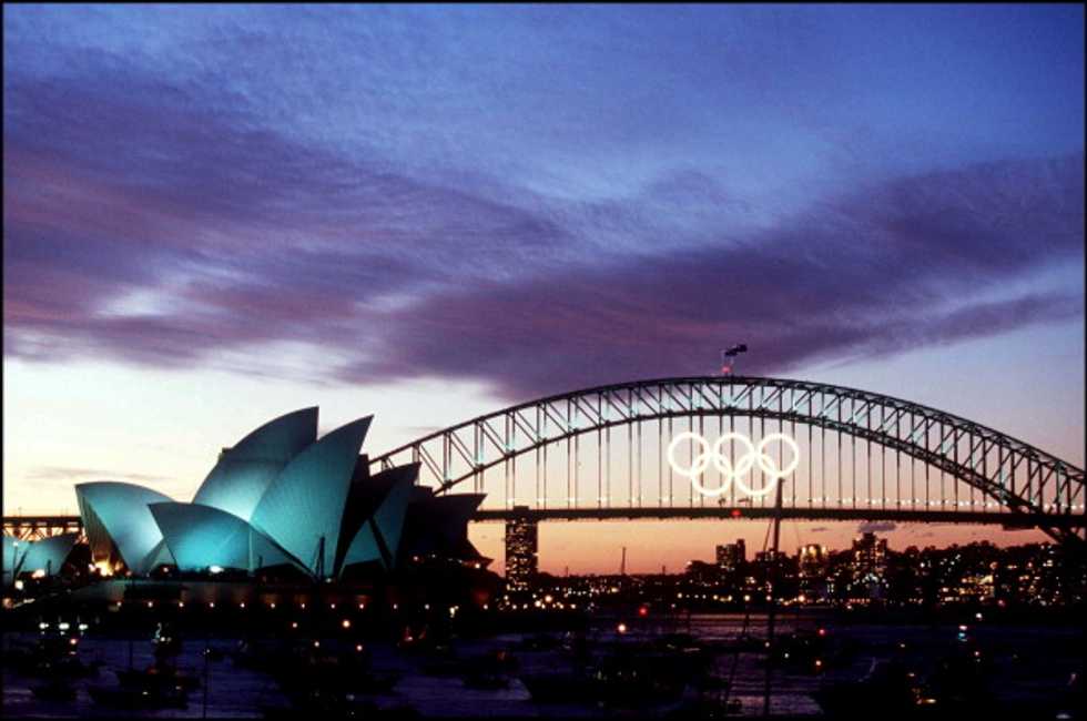 Olympic closing ceremony fireworks display over Sydney harbor and opera house in Sydney, Australia on October 01, 2000. (Photo by Pool JO SYDNEY 2000/Gamma-Rapho via Getty Images)