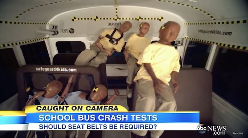 The ABC video showed how seat belts appeared to offer more safety to kids on buses during a rollover accident.