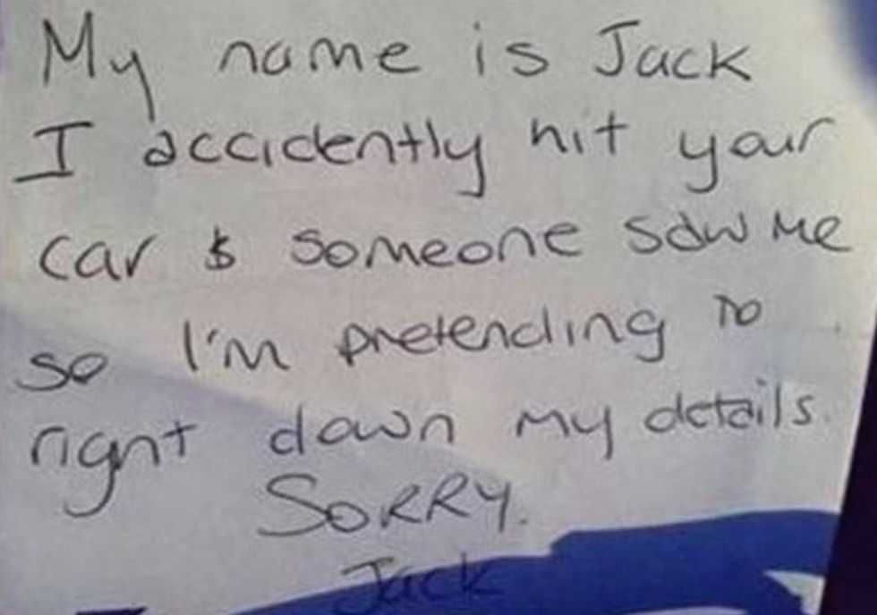 It happens all the time — you return to your car in a parking lot and find a note on the windshield.