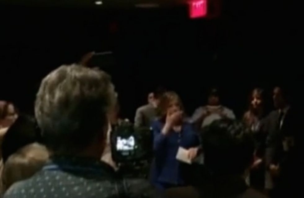 Watch the "war cry" moment below — and see how Sanchez actively flees when reporters try to ask her about the gaffe: