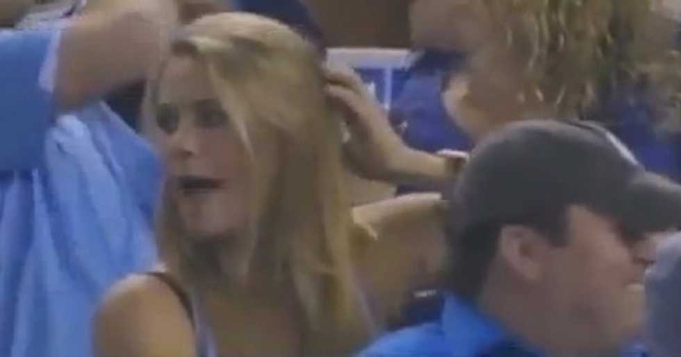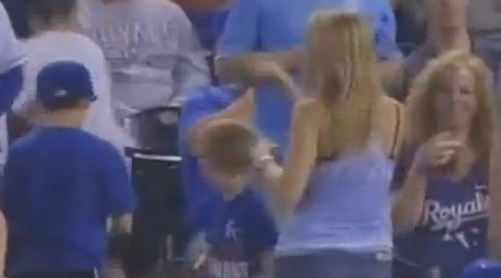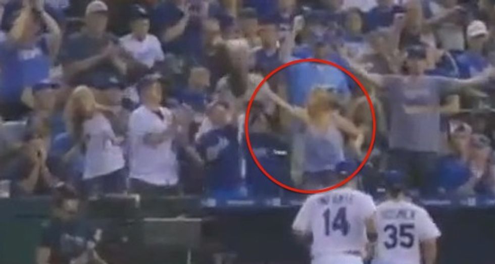 Update 12 p.m. ET: John Kessler, a fellow Royals fan who says he was at the game, emailed TheBlaze to give more context to the video. He claims to have sat near the woman in this video, though, he says, he was at the concession stand at the time the ball was caught. When he returned, he said she was saying "give me back my ball." This, he said, was 10 to 15 minutes after she had caught it.